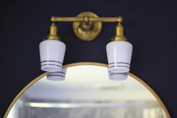 That being said... when you're throwing a summer party in your backyard for friends and family to celebrate your marriage, the proverbial fire under your ass gets seriously LIT. UP. So, our marathon labor of love has quickly become a sprint to the finish line as we attempt to do those things that we can't shove into closets or hide behind closed doors that day. While we may not have grass in our newly ripped up yard, we will certainly have one navy and brass bathroom that we're pretty proud of. So, party in the bathroom, I guess.